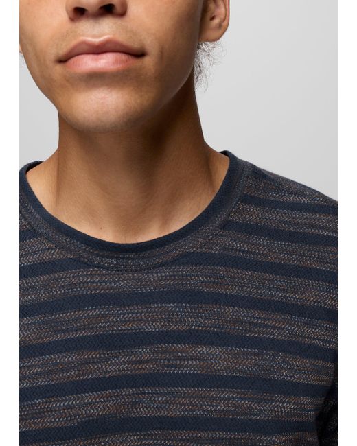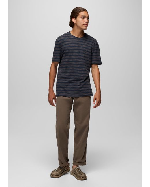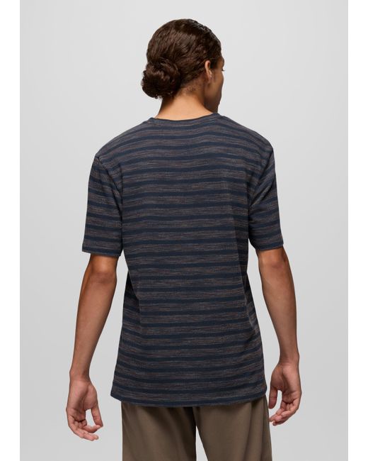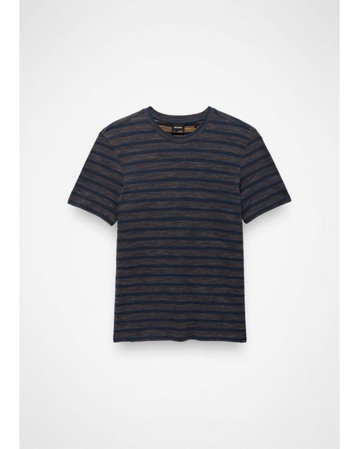 A soft, organic cotton striped tee made for errands, endless vacation days, and everyday wear. The search for the perfect tee is over with the Braton Short Sleeve Crew. This everyday t-shirt is made in ultra-soft organic cotton for a premium feel that fits into your day, from brunch to backyard barbecues and beachside relaxing. Subtle stripes and a standard fit make this simple tee one to reach for when your day calls for comfort. | Mens prAna Braton Short Sleeve Crew in Blue, Size Large
