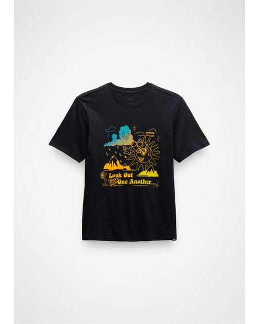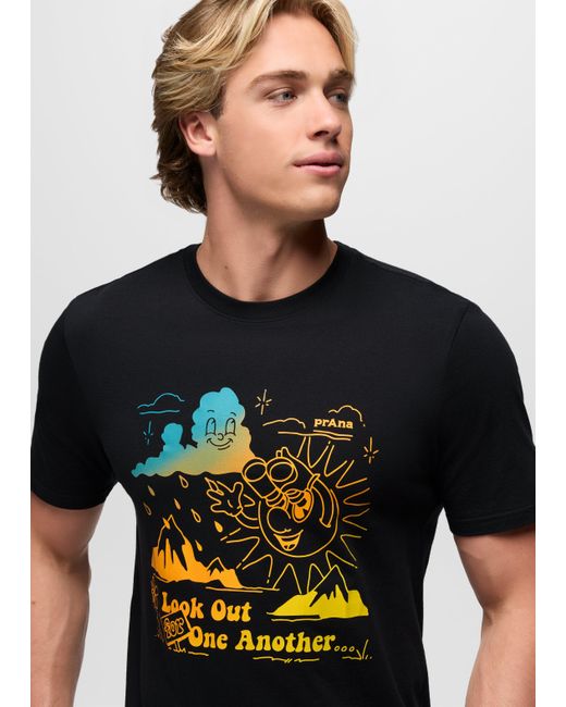 A Regenerative Organic Certified® Cotton graphic tee with an optimistic outlook. Positive vibes only. The prAna Lifeworks Short Sleeve Graphic Tee is a standard fit crewneck tee with cheerful original graphics that nod to caring for your community. Made in Regenerative Organic Certified® Cotton for premium softness and comfort. | Mens prAna Lifeworks Short Sleeve Graphic Tee in Black, Size Large