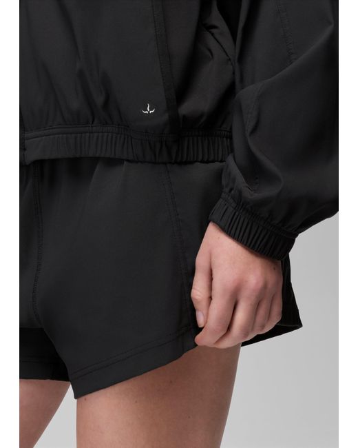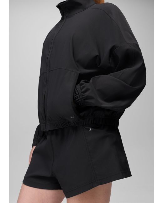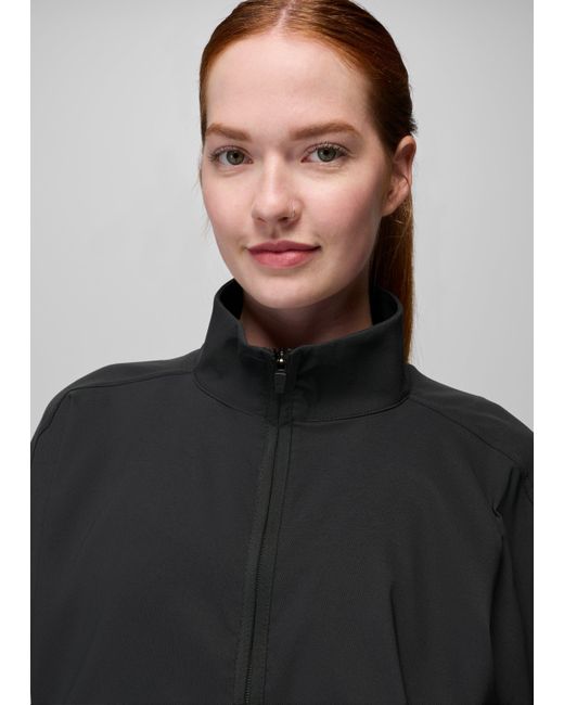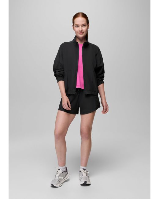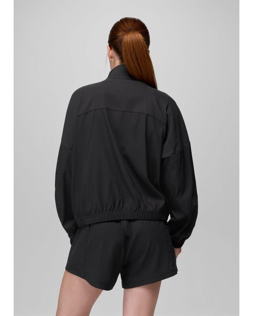 A sporty, lightweight jacket with water-resistant properties that keeps up with busy days and active moments. To, from, and everywhere in between — the Send Off Full Zip is a lightweight jacket that’s made for layering on and heading out. Made in durable recycled nylon with light water resistance, it’s designed with a drop shoulder and cinched elastic hem for style points, while the zippered pockets securely hold your essentials while you’re on the go. Pair with the Send Off Short or Jogger for a sporty set. | Womens prAna Send Off Full Zip in Black, Size Small