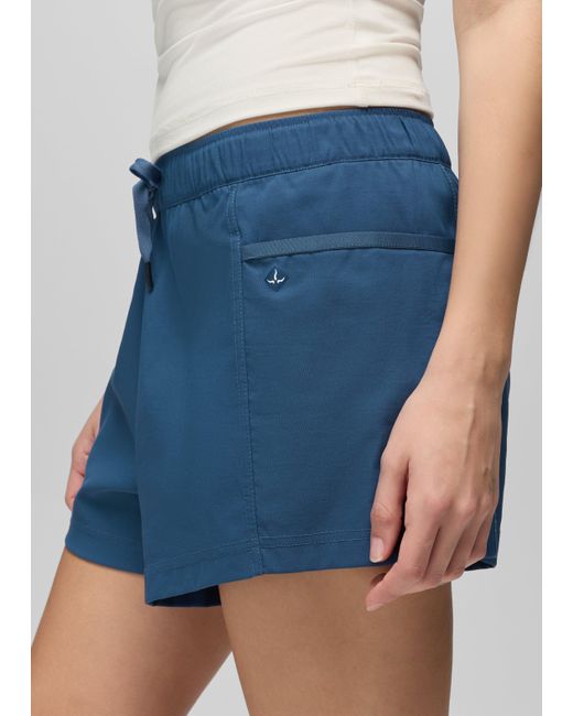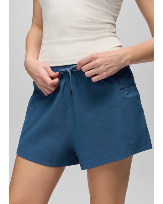 A sporty mid-rise short made in lightweight recycled fabric with stretch for free movement and all-day comfort. The Send Off Short is a lightweight, mid-rise bottom for active moments and comfortable summer outfits. The elastic waistband has an adjustable drawcord for the perfect fit, while the recycled woven fabric has a touch of stretch for maximum mobility while you’re on the go. Side pockets, a 3-inch inseam, and a relaxed fit round off the features with effortless style. Pair with the Send Off Full Zip for a sporty set. | Womens prAna Send Off Short in , Size Large