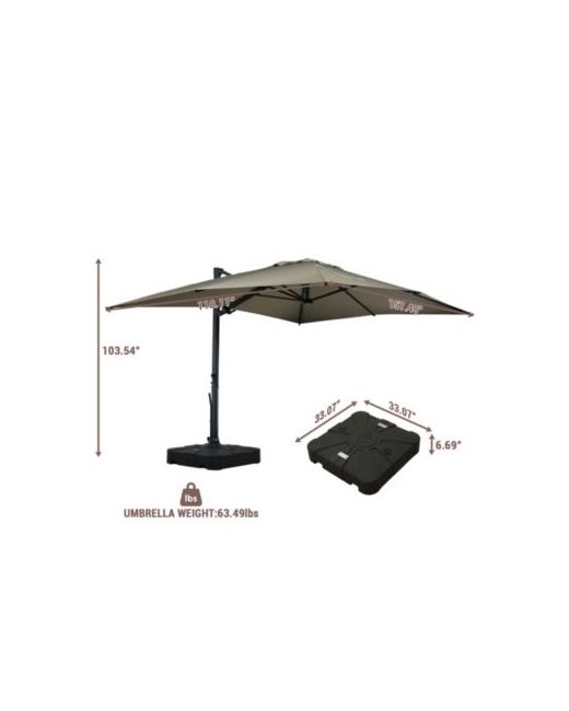 Women's Brown 156W x 120D Rectangular Cantilever Umbrella with Detachable level Brightness Led Light w Weight Base Included