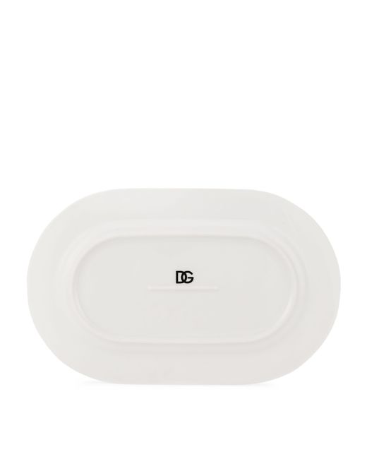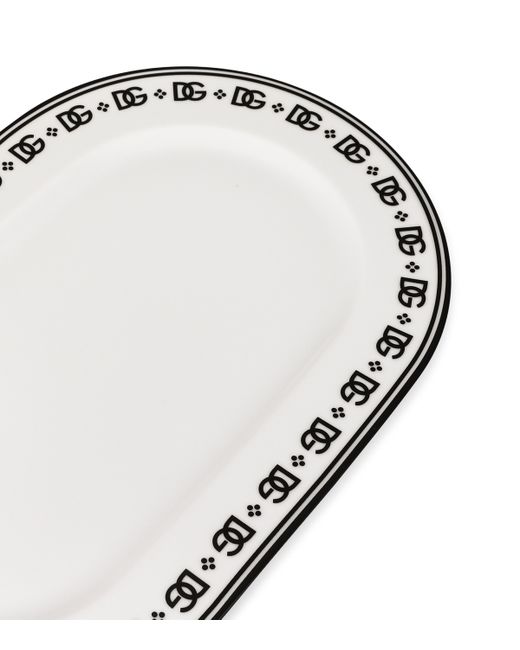 Dolce&Gabbana’s dg logo has long been a symbol of curated Italian design, bringing the initials of the founders together in a hallmark of style, legacy and opulence. The brand’s homeware line, Dolce&Gabbana Casa, employs the motif in an elegant pattern over this serving plate, the interlocking letters forming a monochrome border around the porcelain piece.