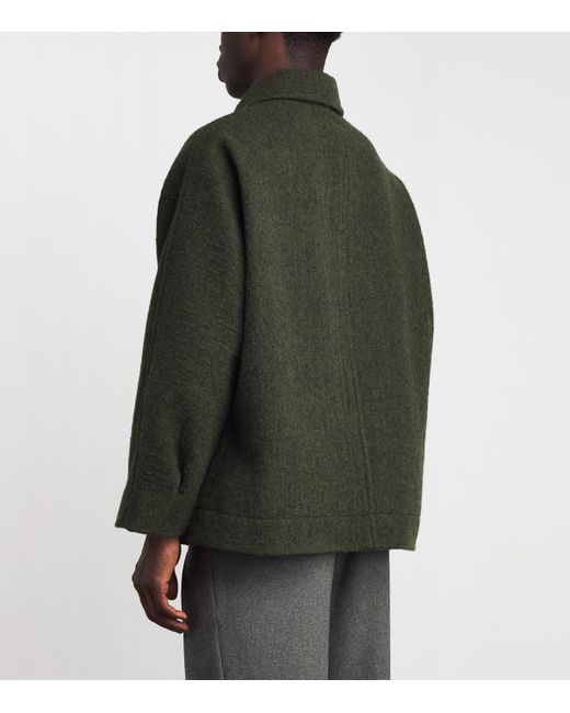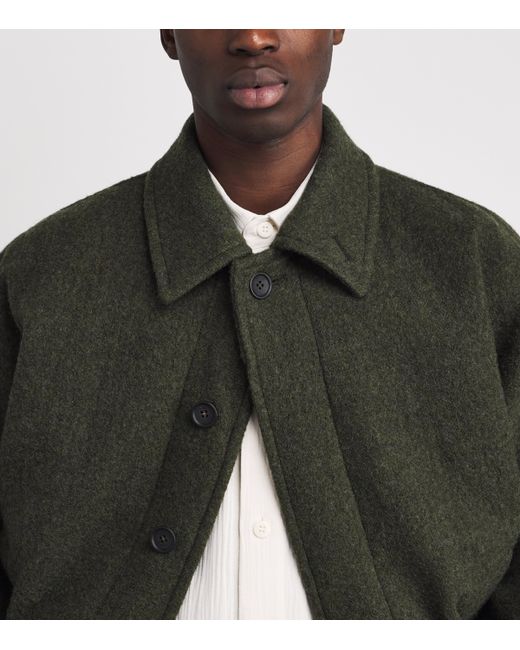 From Pleats Please to A-poc, Issey Miyake has cemented itself again and again as a forerunning pioneer of technical innovation in the fashion realm. im men's Fuller Wool is a prime example; the material is loosely woven, washed and tumble-dried to create a dense, soft fabric for warmth and structure. Here, it is applied to a boxy blouson-like jacket, perfect for layering up with its tailored styles.