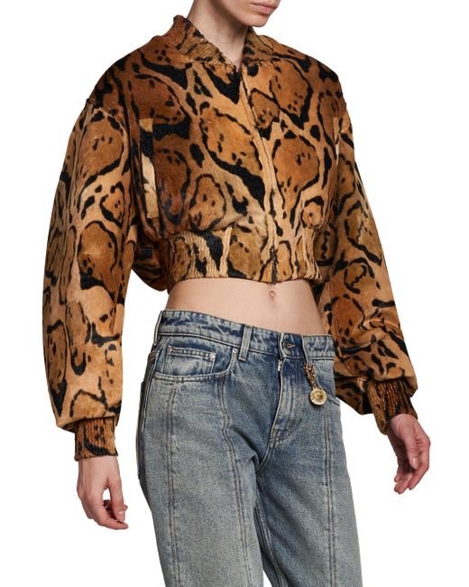Stella McCartney's Cloud leopard bomber jacket features a soft velvet design with an exotic leopard print. Finished in a rib-knit trim, this piece features a baseball collar, welt pockets, and a front zip closure. Baseball collar Long blouson sleeves Rib-knit trim Side welt pockets Front zip closure 64% cotton/36% viscose Dry clean Made in Italy SIZE & FIT Model measurements: 5'10" tall Model is wearing a US size 4 ABOUT THE BRAND From interning at Christian Lacroix at 16 to her role as ChloƩ's Creative Director, Stella McCartney made a name for herself in the fashion industry well before the launch of her own brand in 2001. Since its inception, McCartney has remained dedicated to sustainability and taken an ethically minded design approach-never using leather, feathers, skin or fur in any of her pieces. Today, the brand is renowned for its bold, feminine ready-to-wear and accessories, as well as its foray into menswear, kids' clothing and fragrances. Advanced European - Stella Mccartney Rtw > Stella Mccartney > Saks Fifth Avenue. Stella McCartney. Color: Brown Multi. Size: 0.