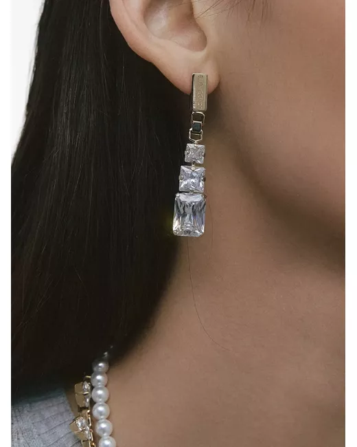 gold-tone rectangular and square crystal embellishments drop style post-back fastening Normal everyday use and external agents may reduce the lustre of gemstones and gold surfaces. To maintain, use specific, non-abrasive products specially meant for cleaning jewellery. These earrings come as a pair.