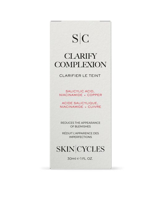 skin|cycles’ Clarify Complexion Serum is your new go-to treatment for clear skin. Formulated with 2% salicylic acid, niacinamide and ectoin, it tackles impurities and congestion while soothing any signs of irritation. Copper gluconate accelerates healing, leaving you with smoother, calmer and more balanced skin.