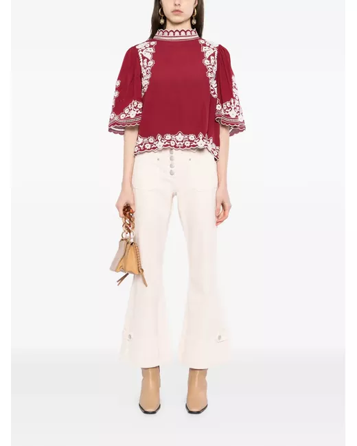 light pink button fly fastening two side patch pockets two rear welt pockets