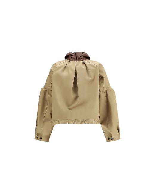The cotton Jacket by Sacai is a versatile and bold piece, featuring a leather collar that adds sophisticated contrast. The front zip closure and two side welt pockets with zippers offer practicality and style. The balloon sleeves and elasticated hem create a modern and dynamic silhouette, while the dropped shoulders add a relaxed touch. The leather zippered pocket detail completes the design, making this jacket ideal for a contemporary and refined look. Season: SS26 Fit: Regular Composition: 100% Cotton