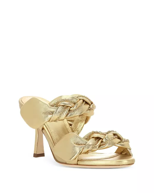 old gold-tone braided detailing heeled style chain embellishment open toe branded insole