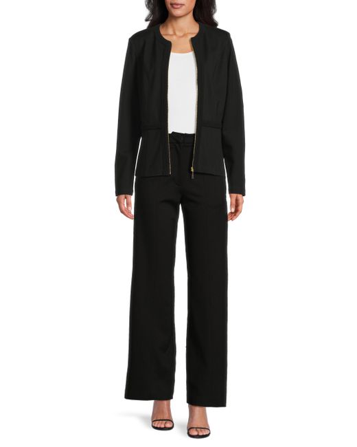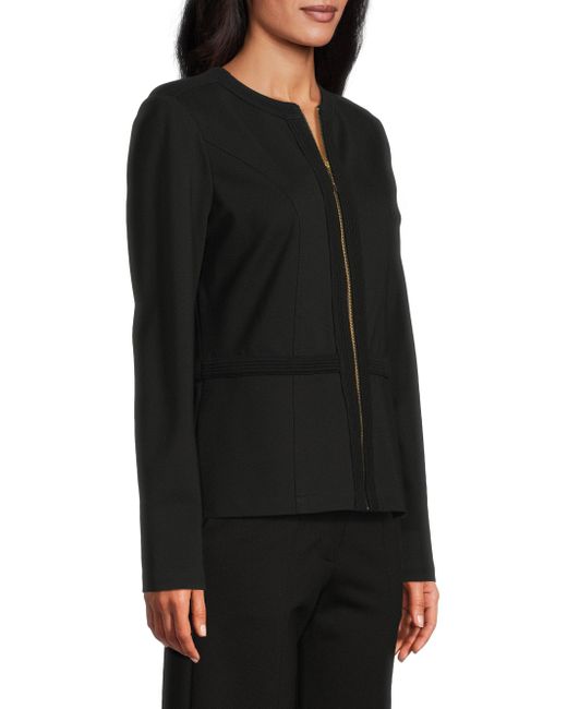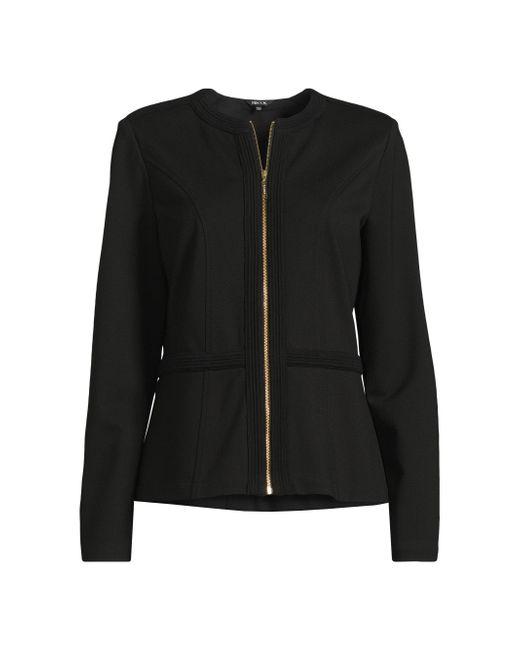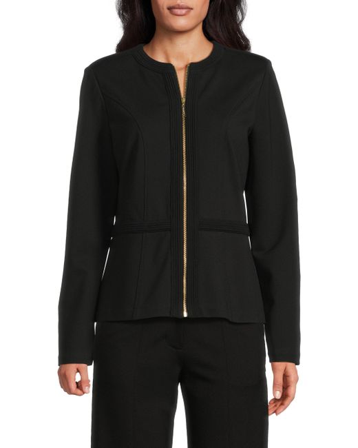 The Heritage stretch ponte zip-up jacket from Misook offers a sleek, tailored silhouette. This design features textured detailing and princess seams for a fitted shape. Crewneck Long sleeves Front zip closure 60% cotton/35% nylon/5% spandex Hand wash Imported SIZE & FIT About 24" from shoulder to hem Model measurements: 5'10" tall Model is wearing a US size 4. Modern Collections - Modern Coll > Misook > Saks Fifth Avenue. Misook. Color: Black. Size: Small.