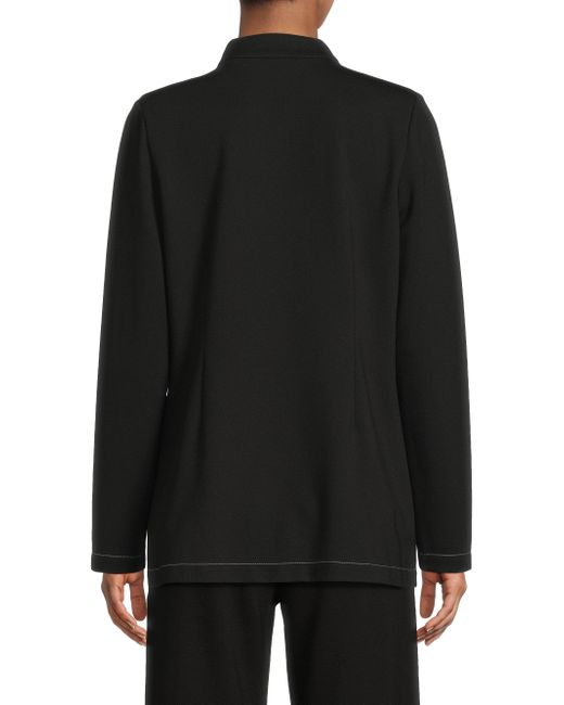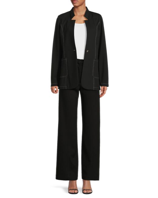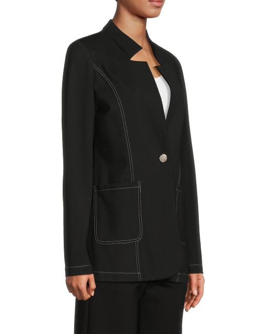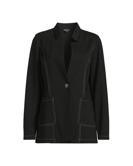 Misook's tailored ponte blazer is crafted of a stretch cotton-blend, featuring an inverted notch collar and sculpting princess seams with contrasting stitch detail. Inverted notch collar Long sleeves One-button closure 60% cotton/35% nylon/5% spandex Hand wash Imported SIZE & FIT About 28" from shoulder to hem Model measurements: 5'10" tall Model is wearing a US size 4. Modern Collections - Modern Coll > Misook > Saks Fifth Avenue. Misook. Color: Black White. Size: Small.