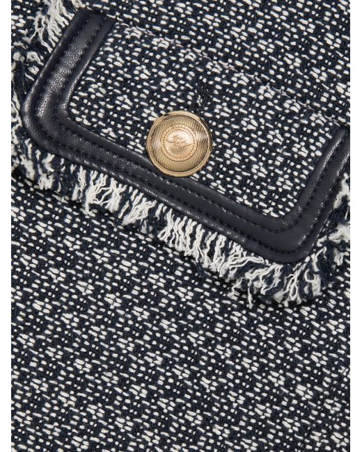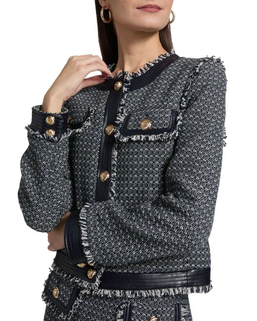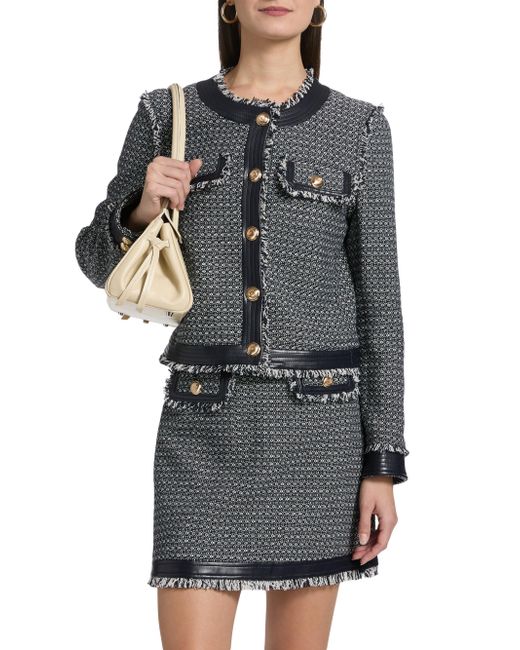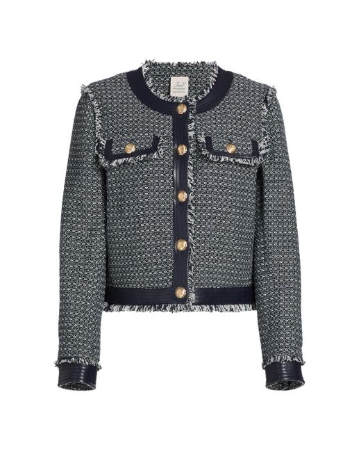 Crafted of a cotton blend, this Deva jacket from Cinq à Sept is detailed in a birdseye tweet and designed with mock flap pockets at the chest. This piece, styled with fringe trim, fastens with button-front closure. Crewneck Long sleeves Fringe trim Button-front closure 65% cotton/32% polyester/3% other fibers Lining: 100% polyester Dry clean Imported SIZE & FIT About 20" from shoulder to hem Model measurements: 5'10" tall Model is wearing a US size Small ABOUT THE BRAND Inspired by the radiant, magical hours between 5 and 7 PM-which is what the label's French name translates to-founder Jane Siskin designs sophisticated, feminine pieces for both workweek and the weekend. The designer's silhouettes also play with volume and eye-catching trimmings-perfect for cocktails or a special night out. Contemporary Sportswear - Cinq A Sept > Cinq à Sept > Saks Fifth Avenue. Cinq à Sept. Color: Navy White. Size: XS.