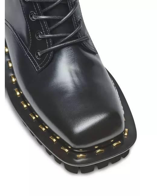 black patent finish gold-tone stud embellishment lug sole front lace-up fastening side zip fastening