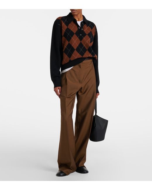 Material: 100% wool. Care instructions: dry clean. Made in Italy. Designer color name: Black Rust Check. Collar: polo collar. Closure: buttoned placket. Cuff: ribbed. Hem: ribbed. Wool.
