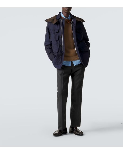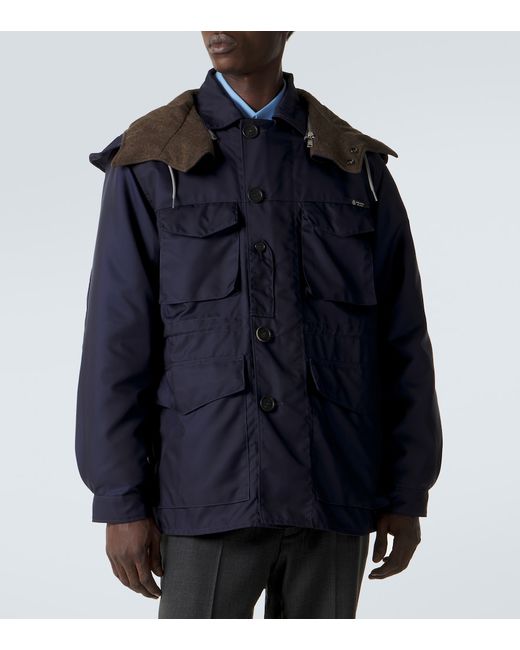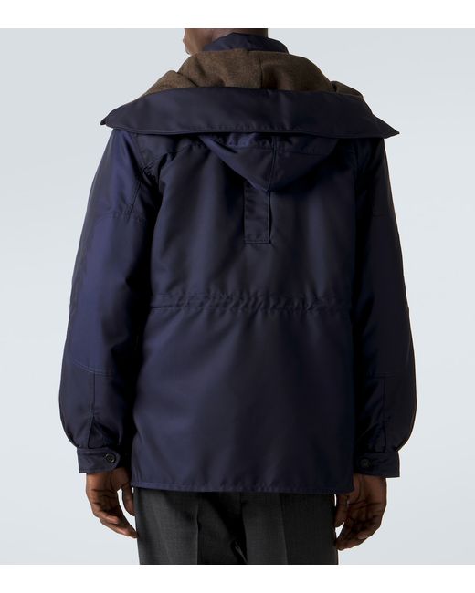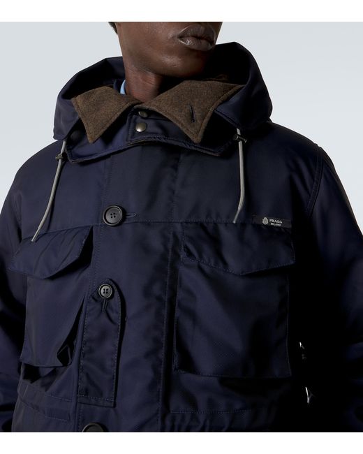 Material: 100% polyester (recycled). Care instructions: dry clean. Made in Italy. Designer color name: Blue. Other inner trims: 100% virgin wool. Contains non-textile parts of animal origin. Material II: 68% wool, 32% polyester. Details: 100% virgin wool. Lining: 100% polyamide (recycled). Closure: two-way zipped front, buttoned front. Pockets: flap pockets, flap chest pockets. Cuff: buttoned. Detachable drawstring hood. Detachable inner vest.