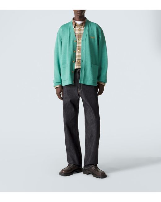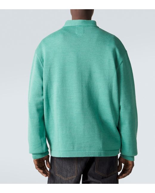 Material: 100% wool. Care instructions: dry clean. Made in Japan. Designer color name: Lt Green. Closure: buttoned front. Cuff: ribbed. Hem: ribbed. Wool.