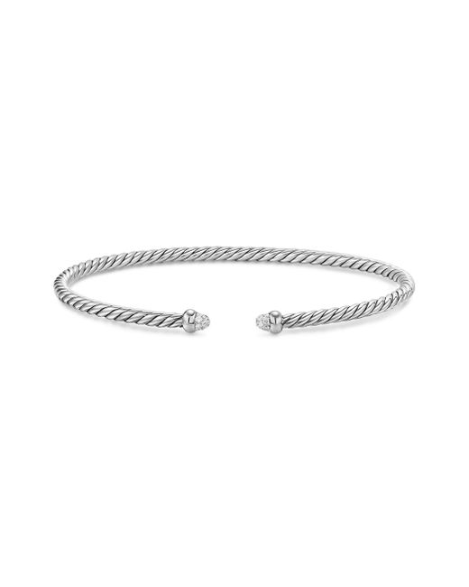 David Yurman's artistic signature, Cable began as a bracelet that he hand-twisted from 50 feet of wire. For the past 30 years, he has evolved the twisted helix into a myriad of designs. Sterling silver Pave-set diamonds, 0.07 total carat weight Bracelet, 2.6mm Nitinol core to provide flex movement Made in USA Size Extra Large (XL) fits wrists up to 7.29'' Size Extra Small (XS) fits wrists up to 5.56'' Size Large (L) fits wrists up to 6.79'' Size Medium (M) fits wrists up to 6.30'' Size Small (S) fits wrists up to 6.14'' ABOUT THE BRAND David, a sculptor, and his wife, Sybil, a painter, launched their innovative jewelry brand in 1980 in New York City. Since then, the American design house has pioneered cutting-edge collections-from its iconic combination of sterling silver and diamonds to signature pinky rings. Today, with their son Evan, the Yurmans continue to deliver timeless pieces inspired by nature, art, ancient symbols and Manhattan's stunning architecture. Lsd Jewelry - David Yurman > David Yurman > Saks Fifth Avenue. David Yurman. Color: Diamond. Size: XL.