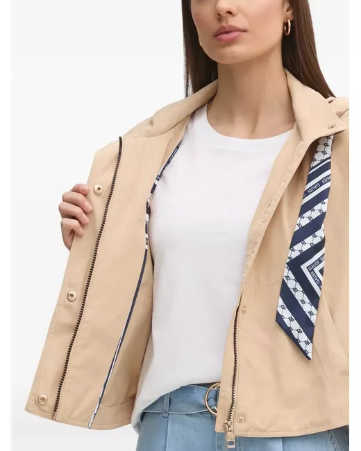 beige zip fastening hood scarf detail buttoned cuffs flap pockets