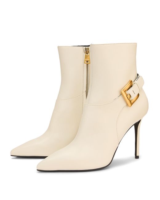 EXLCUSIVE. From the XO Capsule. Balmain's Anthem ankle boots are crafted of leather and feature an adjustable wide strap with a rectangular goldtone metal buckle wrapped around the ankle. Point toe Side zip closure Leather upper Leather lining Leather sole Made in Italy SIZE Stiletto heel: 3.75" (95mm) ABOUT THE BRAND In 1945, founder Pierre Balmain made his well-received debut of opulent, ultra-feminine designs. Known today for its iconic blazers, impeccably constructed dresses and signature fragrances, the brand continues its dedication to masterful tailoring and elegance under the helm of Creative Director Olivier Rousteing. Women's Shoes - Advanced Women's Designe > Balmain > Saks Fifth Avenue. Balmain. Color: Cream. Size: 7.5.