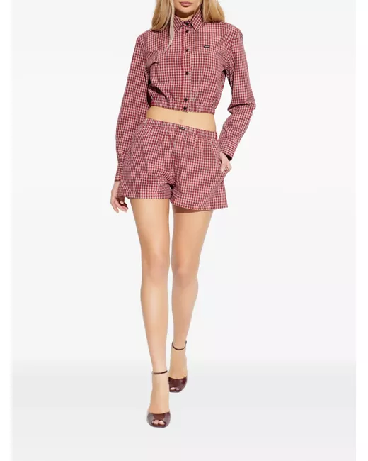 Women's Red elasticated check shorts