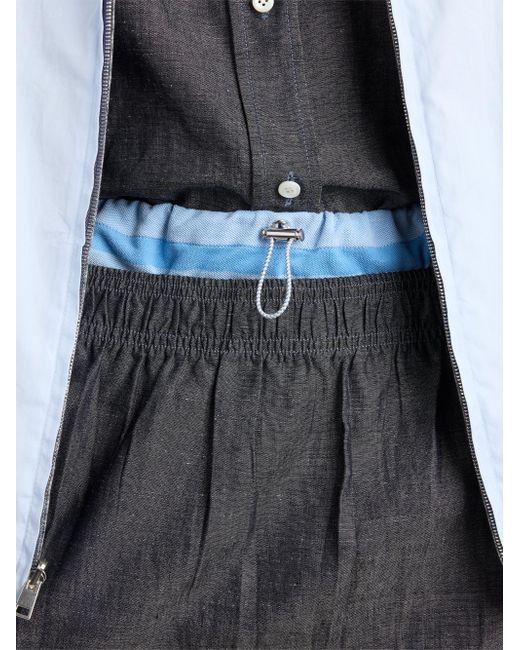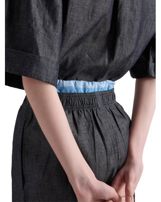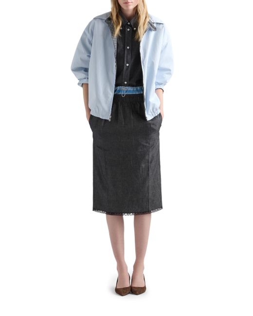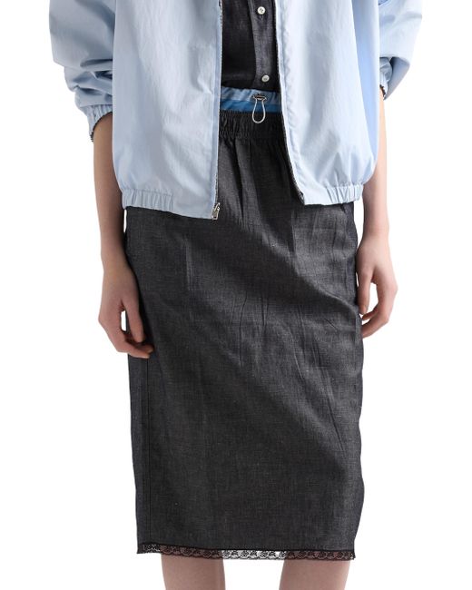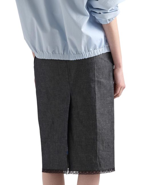 Raw denim treatment Unlined garment Classic fit Regular waist Center-back length: 68 cm, Size: 38 Triangle logo Elasticized waist Lace trim on hem Pressed garment 65% Cotton, 35% Flax Imported. Lsd Rtw - Prada Rtw > Prada > Saks Fifth Avenue. Prada. Color: Blue. Size: 2.