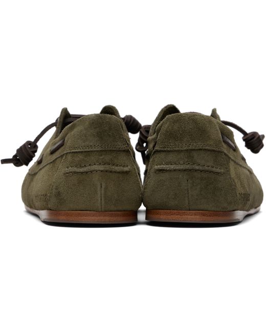 Suede boat shoes. · Moc toe · Lace-up closure · Logo embossed at outer side · Pinched seam at heel counter · Leather sole with rubber injection Supplier color: Khaki