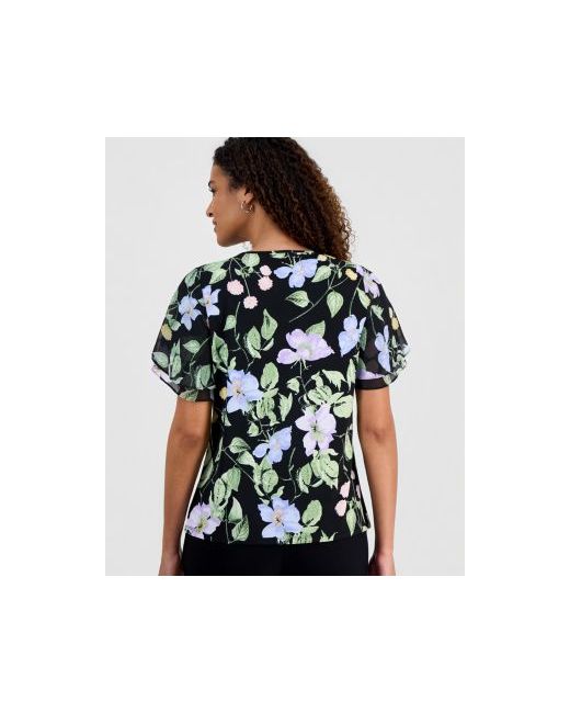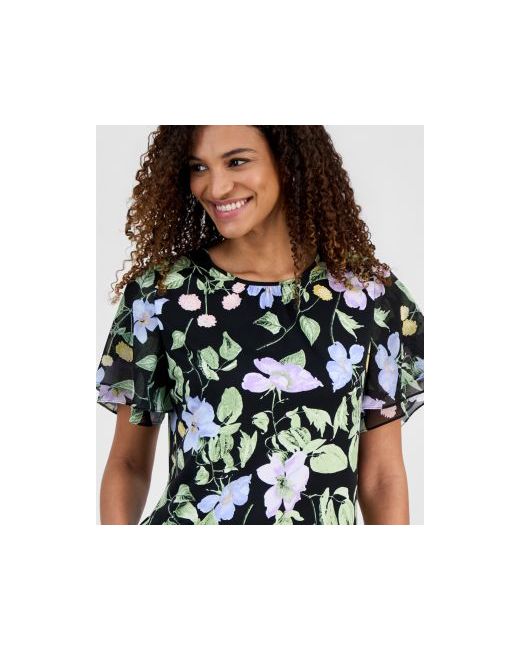 A vibrant floral print and floating flutter sleeves enhance this stylish blouse from Kasper. Team it with polished trousers or a pencil skirt to complete the look.