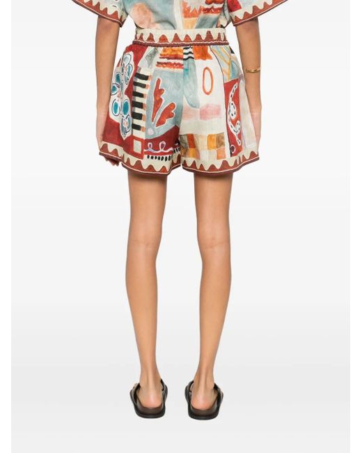 Marine Pleated Striped Embroidered Organic Cotton Shorts
