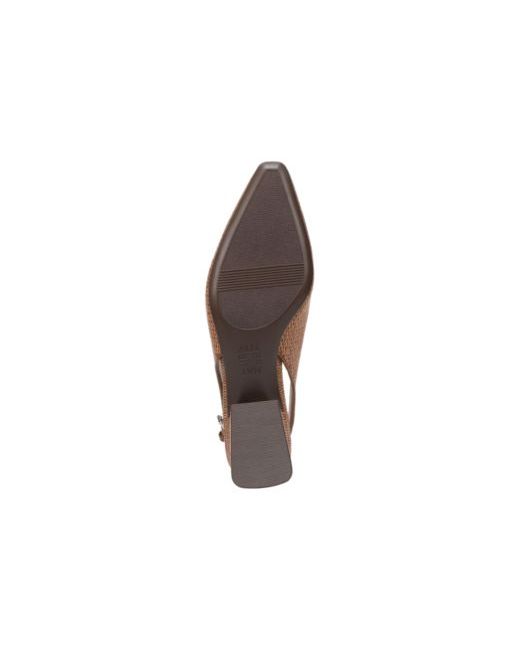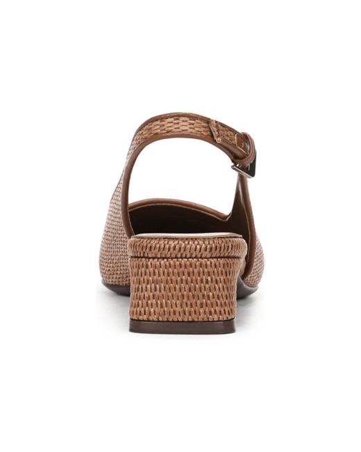 Say hello to your new favorite heels. A slingback strap and versatile design make these so easy to wear and style. Slingback heel with square topline. Synthetic or straw upper with a snip toe. Adjustable buckle closure. Contour+ Comfort technology for a premium fit and all-day comfort experience. New Contour footbed: extra layer of padding, contoured shape, pressure distribution, less fatigue and longer wear for a next-level fit. 1-inch low block heel. Why You'Ll Love It: Forever elegant silhouettes with all day wearability, available in an inclusive range of sizes and widths. Designed to the contours of a woman's foot. The Beautiful Fit. Since 1927.