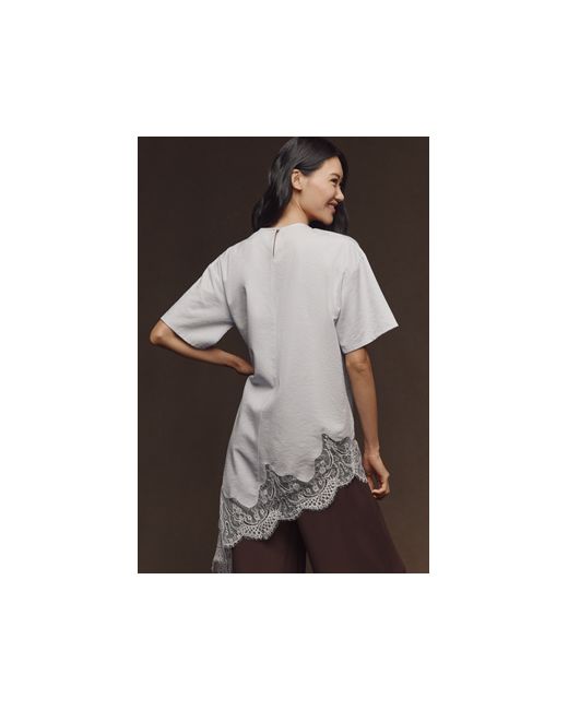 By Mare Mare 55% Viscose, 25% Cotton, 12% Polyamide, 8% Linen Pullover styling Hand wash Imported Asymmetric Lace Top by Mare Mare in Blue, Women's Size: XS, Cotton/Linen/Polyamide at Anthropologie