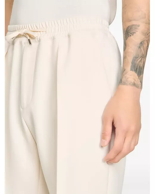 off-white drawstring fastening elasticated waistband side seam-pockets back welt-pockets pleat detail