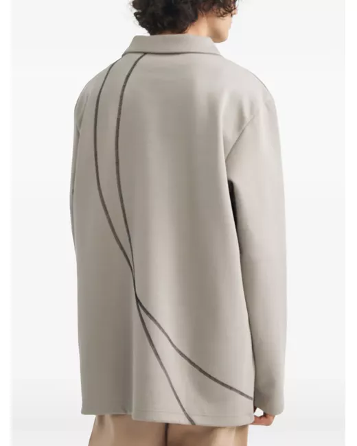grey V-neck panelled design long sleeves linear print to the back