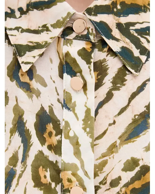 beige animal print button closure classic collar sleeveless