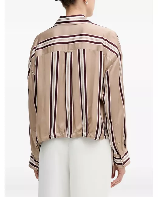beige vertical stripe button fastening drawstring detail buttoned cuffs pointed collar