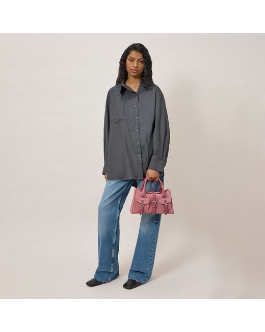 A small version of our Roxanne bag, itself a modern update on our 2003 style, the Small Roxanne takes all the Y2K attitude of the original and updates it, with brass buckling and streamlined details. Features two front pockets ideal for smaller items, as well as a detachable and adjustable strap for multiple ways of wearing. Details: A Small version of our Y2K-inspired Roxanne style. Silver hardware finish Detachable and adjustable strap Two top handles Two external front pockets with magnetic closure One internal slip pocket Buckle detailing Foil embossed Mulberry signature Height 13.5cm - 17cm Width 24cm - 28cm Depth 6cm - 10cm Handle Drop 12cm Strap Length 69cm - 84cm Strap Drop (from middle hole) 50cm Weight 0.8kg, approximately Material Suede A bovine suede which has been finished with a clear resin backing to give a smooth, contrasted appearance and improve functionality. This backing reduces colour and fibre transfer and allows for gentle cleaning of the material. This product's code is HH9979-047J647