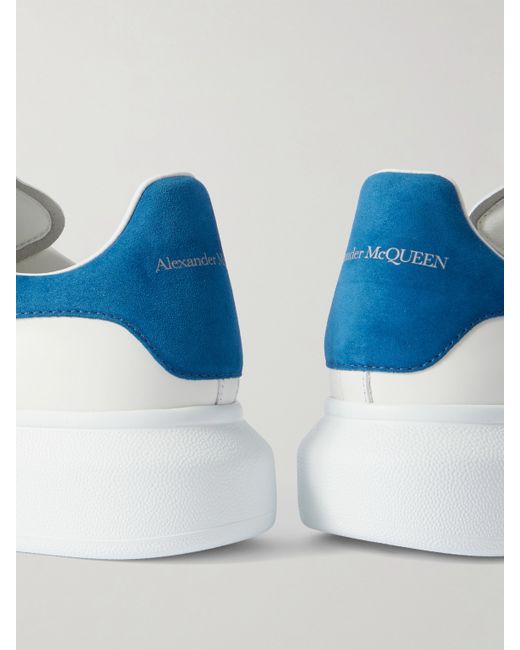 McQueen's exaggerated-sole sneakers need no introduction – they've been popular since 2016. This pair has been made in Italy from white leather trimmed with 'Paris Blue' suede heel tabs and set on chunky rubber soles.