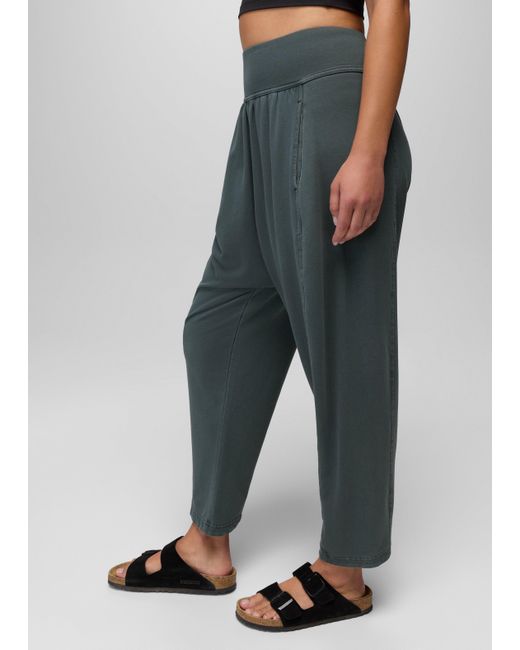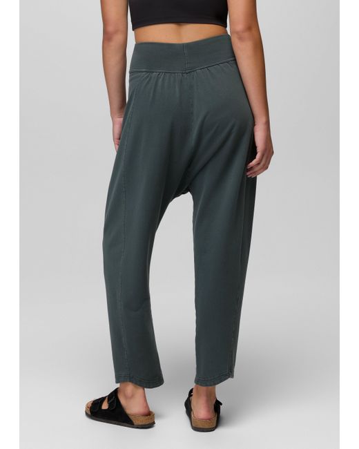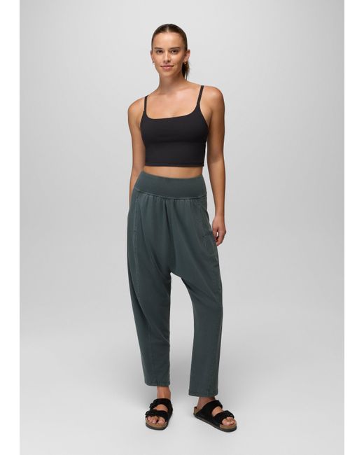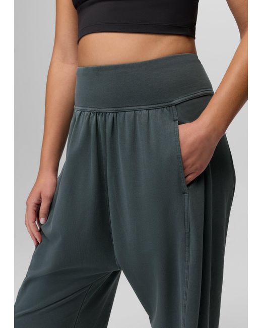 Mid-rise harem pants with a wide waistband and soft organic cotton blend to give you a sense of ease. Move through the day in these harem pants designed with a roomy drop crotch and wide, comfortable waistband. The organic cotton blend keeps them breathable and is finished with a garment wash for an ultra-soft hand feel. Side pockets are ready to hold the day's little necessities. Wear them high or low and relax into your restorative yoga flow. | Womens prAna Mindful Movement Harem Pant in Grey Blue, Size Medium
