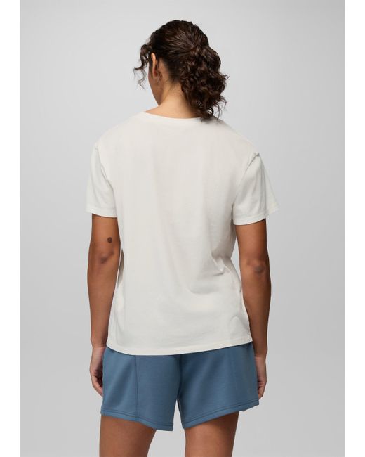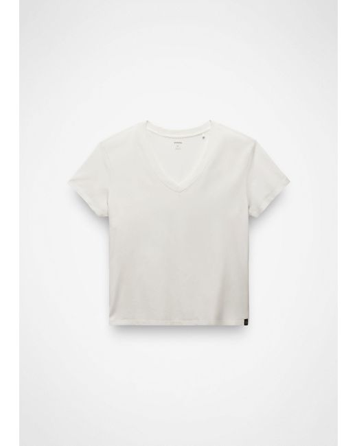 A V-neck tee, made in soft Regenerative Organic Certified® Cotton jersey with a laidback vintage-washed effect. The Everyday V-Neck Tee is a versatile wardrobe building block for easy outfits and casual style. Made in super-soft Regenerative Organic Certified® Cotton jersey, it’s been garment-washed for a lush feel and a worn-in vintage look from day one. The deep V-neckline and ladder-stitch sleeve detail elevate this simple tee. Wear it as loungewear or dress it up with a summer skirt and sleek sandals. | Womens prAna Everyday V-Neck Tee in White, Size Large
