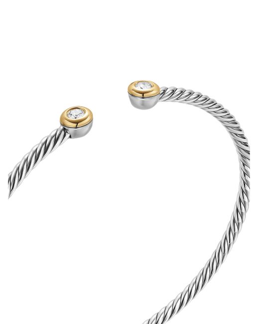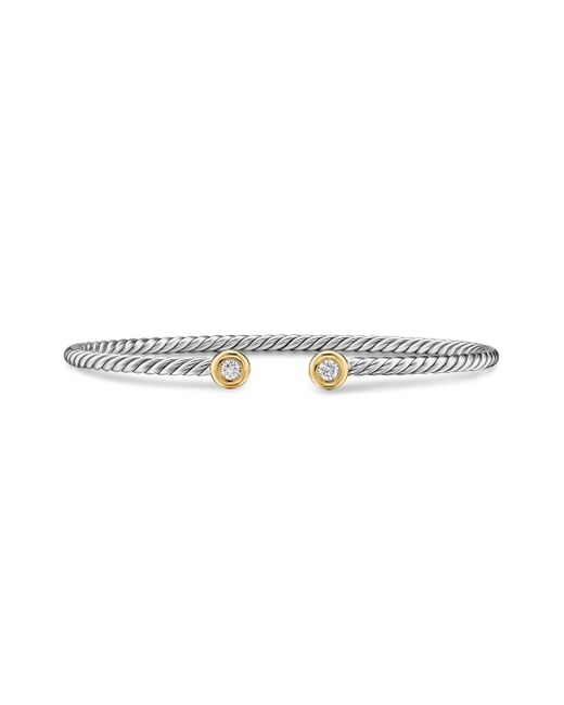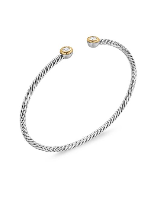 David Yurman's artistic signature, Cable began as a bracelet that he hand-twisted from 50 feet of wire. For the past 30 years, he has evolved the twisted helix into a myriad of designs. Sterling silver with 14-karat yellow gold Diamonds, 0.16 total carat weight Bracelet, 2.6mm Nitinol core to provide flex movement Made in USA ABOUT THE BRAND David, a sculptor, and his wife, Sybil, a painter, launched their innovative jewelry brand in 1980 in New York City. Since then, the American design house has pioneered cutting-edge collections-from its iconic combination of sterling silver and diamonds to signature pinky rings. Today, with their son Evan, the Yurmans continue to deliver timeless pieces inspired by nature, art, ancient symbols and Manhattan's stunning architecture. Lsd Jewelry - David Yurman > David Yurman > Saks Fifth Avenue. David Yurman. Color: Diamond. Size: Medium.