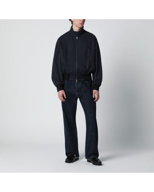 Studio Nicholson ink blue cotton-blend bomber jacket, featuring double front zip closure, high collar with buttons, long sleeves, two side pockets and ribbed knit trims.