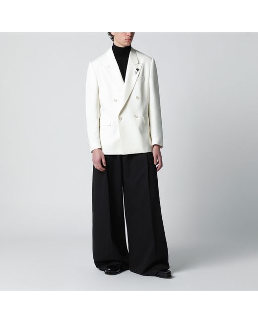 Lardini double-breasted white viscose and silk jacket with button fastening, peak lapels, long sleeves with buttoned cuffs, one chest welt pocket, two front flap pockets and double back vent.