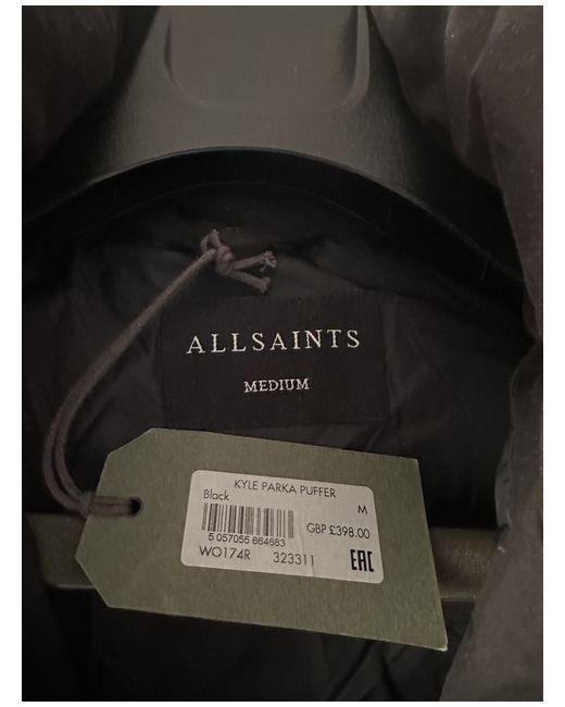 Battle the cold. The quilted Kyle Parka Puffer Coat is cut to a boxy, longline silhouette with a cosy hood and warm insulation. Leather strip detailing on the sleeves adds a touch of the AllSaints aesthetic.