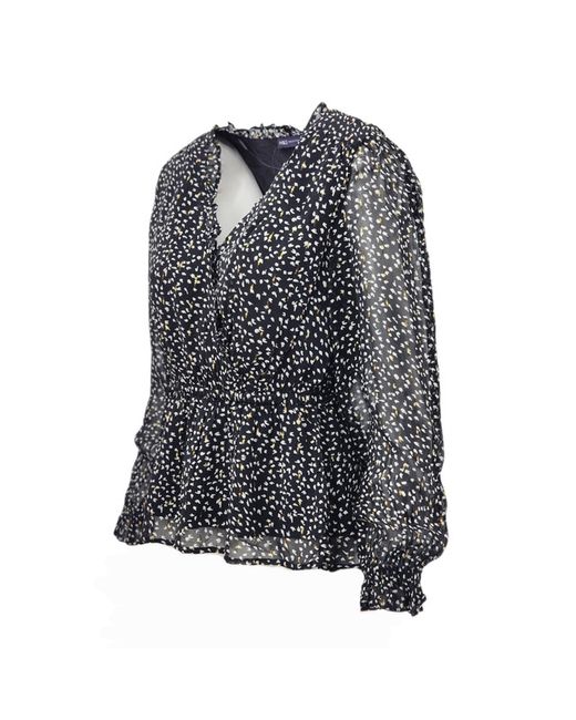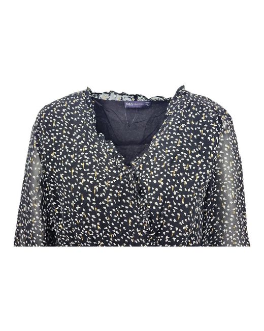 Printed V-Neck Ruffle Puff Sleeve Blouse. Lend a romantic feel to outfits with this waisted, wrap-front blouse. Easy regular fit, with ruffles at the flattering v-neckline and light long sleeves. M&S Collection: easy-to-wear wardrobe staples that combine classic and contemporary styles.