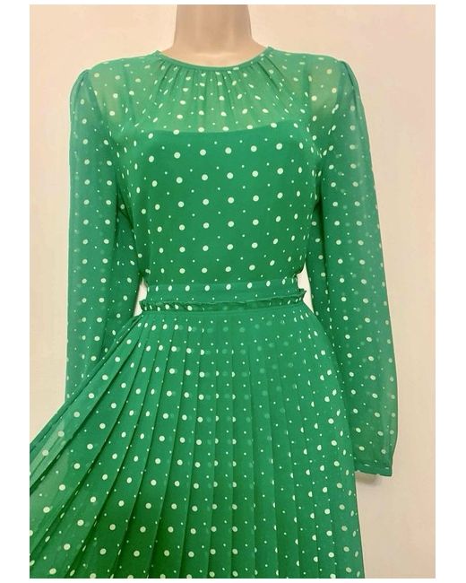 L.K. Bennett London Stunning Dr Avery Green Polka Pleated Midi Dress Size 10 - Bnwot