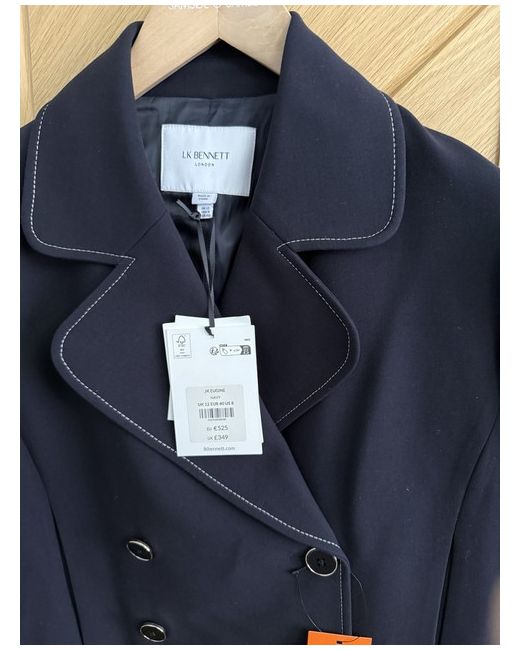 This double-breasted jacket from LK Bennett is crafted with a touch of wool in the fabric for extra softness and warmth. It's made in a regular fit, with oversized notched lapels at the neckline. The cropped silhouette gives it a modern look, while topstitching on the hem and button cuffs provides texture.