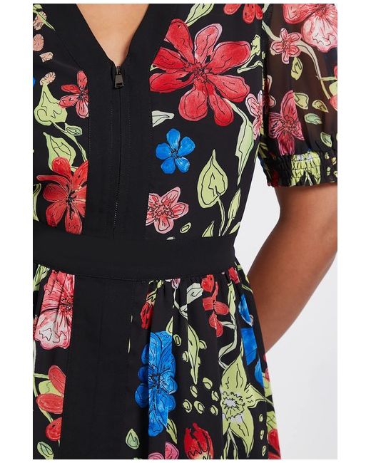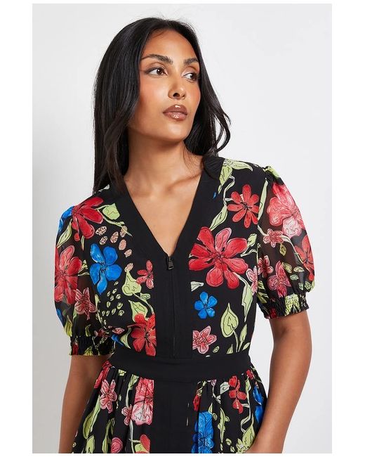 WALLIS Petite Floral Zip Puff Sleeve Midi Dress. Petite Floral Zip Puff Sleeve Midi Dress.