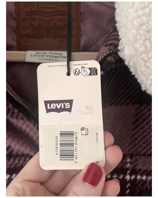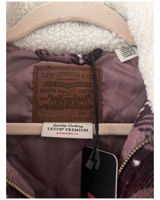 Women's Purple Levi Shrunken 90s Trucker Jacket Medium Pink Check