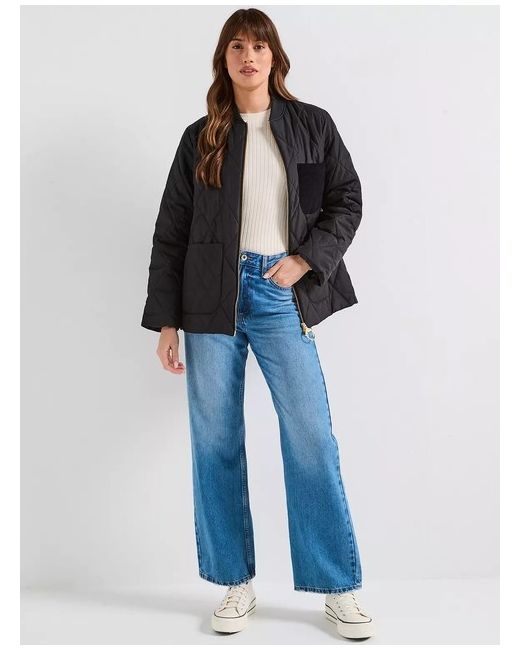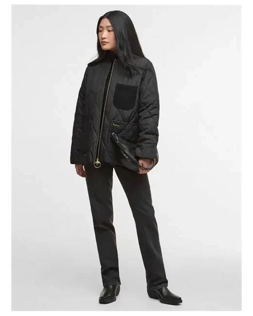BARBOUR Leonie quilted jacket, black gold tone zip, woven cuffs and collar, with Liddesdale inspired pockets, contrasting quilted and cord details. Size 10, machine washable.