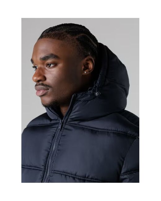 Discover comfort and contemporary flair with the French Connection Navy Hooded Puffer Jacket. Crafted from 100% polyester, this versatile piece is your essential layer for the new season. This hooded puffer jacket is tailor-made for effortless layering over your favourite hoodie or casual outfits.
