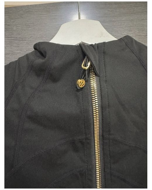 The Lululemon Women's Define Jacket in Black is a perfect choice for gym running and yoga during the spring season. Made from a blended fabric with a nylon outer shell and polyester insulation, this jacket offers comfort and breathability. The long sleeves, full zip closure, and machine washable care make it convenient for active wear. With a size 6 fit and Lululemon's signature style, this basic jacket is ideal for women looking for a versatile and stylish activewear option.